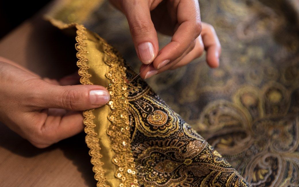 پنل لمه و پولک دوزی منسجم روی پارچه دیسکویی