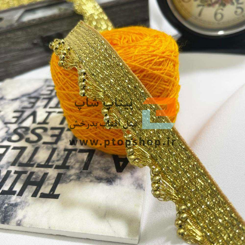 | جنس | نوار خرجکار طلایی دیزاین شده با مهره طلایی و نخ زری دوزی |