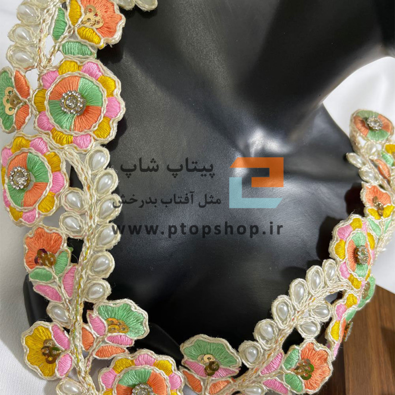 این پنل یقه آماده در عین داشتن سبک مینیمال از جمله پنل یقه های پر کار بوده و با گلدوزی منسجم در رنگ های پاستلی ملیح و با استفاده از پولک ، نگین و مروارید اشکی در کنار سبک مشبک خود جذابیت خاصی را پیدا کرده است. اجزا گفته شده در این پنل پر کار و شیک از مروارید و نگین تراش خورده گرفته تا پولک، با کیفیت و دقت بالایی در کنار هم چیده شده و علاوه بر پرهیز از شلوغی پنل از بیشترین المانهای زیبا سازی در کار نیز استفاده شده است. همین امر باعث شده پنل از نزدیک بسیار زیبا و چشم نواز جلوه کند. طراحان لباس با توجه مشبک بودن پنل که باعث نمایش پارچه زیرین در قسمت هایی از پنل خواهد شد در کنار ذوق و سلیقه هنری خود ، اینکار را میتوانند بکاربرده و کار خاصی را ارائه دهند. پنل تکی میباشد و شما میتوانید نوار ست با این پنل را از منوی نوار خرجکار فروشگاه پیتاپ شاپ ptopshop تهیه فرمائید. ابعاد پنل یقه با قد 31 در عرض 10 سانتی متر می باشد.
