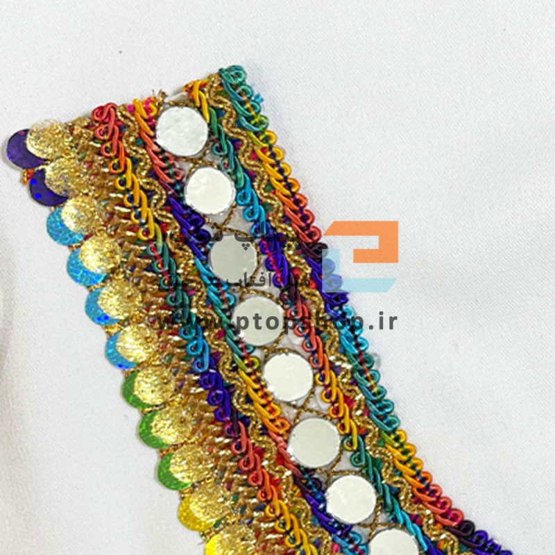 نوار خرجکار پهن سوزندوزی سنتی آینه ، نگین و مروارید کاری شده