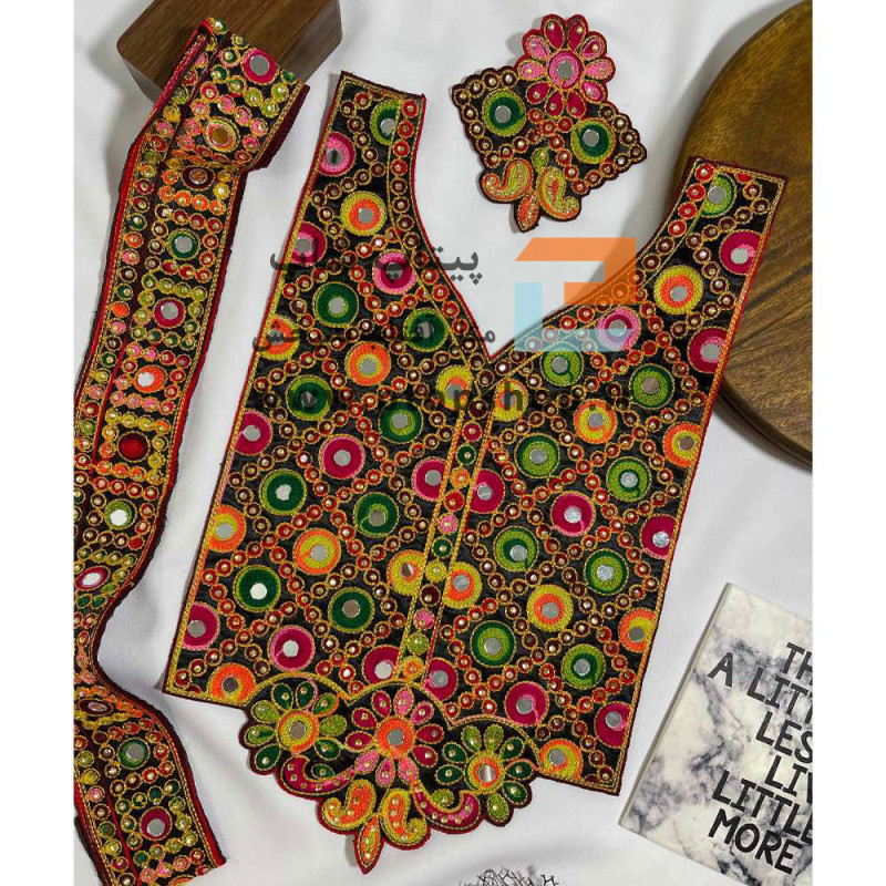 ست یقه و نوار خرج کار فوق با ترکیب نابی از سوزندوزی به رنگ های روشن و شاد به همراه آینه کاری و دیزاین نگین و نخ زری دوزی، انتخاب مناسبی برای کار های سنتی می باشد .با رعایت ترکیب رنگ پنل با پارچه بیس، محصول میتواند جلوه زیبای خاص لباس های بلوچی و سوزندوزی را به همراه داشته باشد. همچنین استفاده خلاقانه از نوار و اپلیکه موجود بشکل متقارن و یا نا متقارن محصول خاصی را میتواند خلق کند . شما خیاط و مزون دار با سلیقه با تهیه این ست پنل یقه و نوار خرج کار بهمراه اپلیکه از فروشگاه پیتاپ شاپ میتوانید محصولات خاص و منحصر بفردی را خلق نمائید.